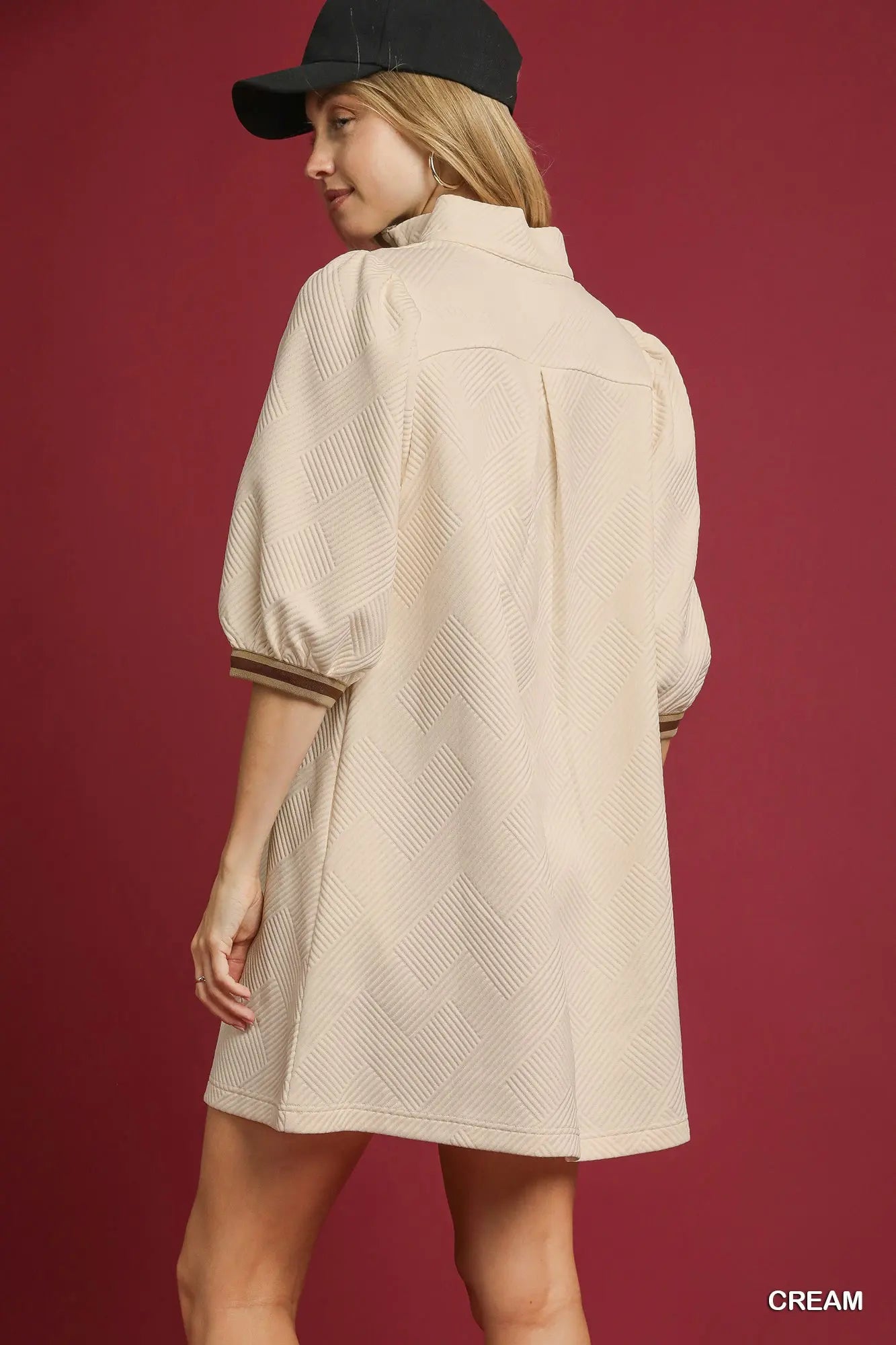 High Neck Jacquard Mini Dress-Cream K1244