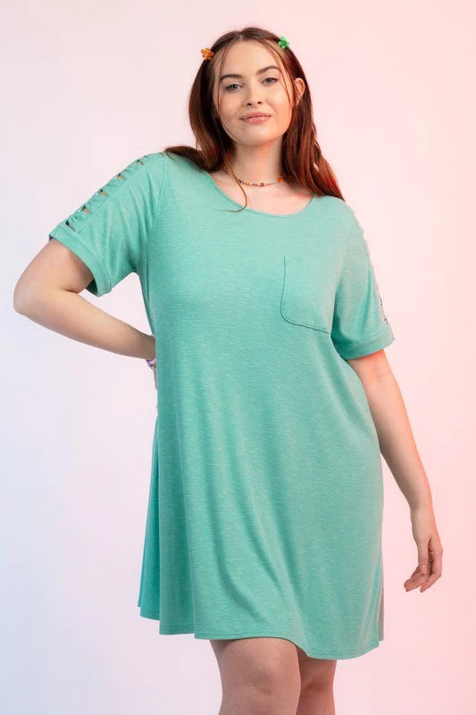 Ribbed Space Dye Lattice Sleeve Dress- Green