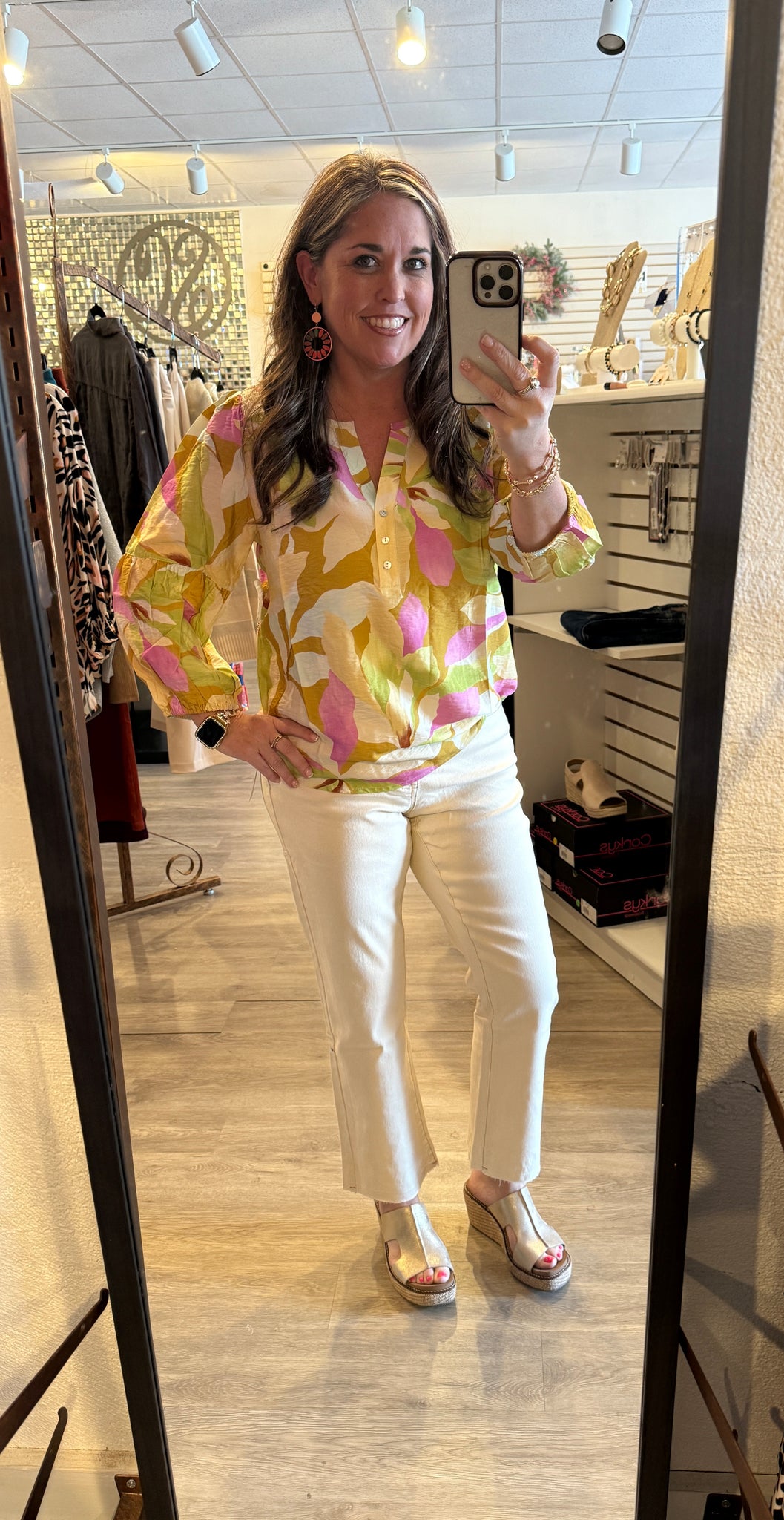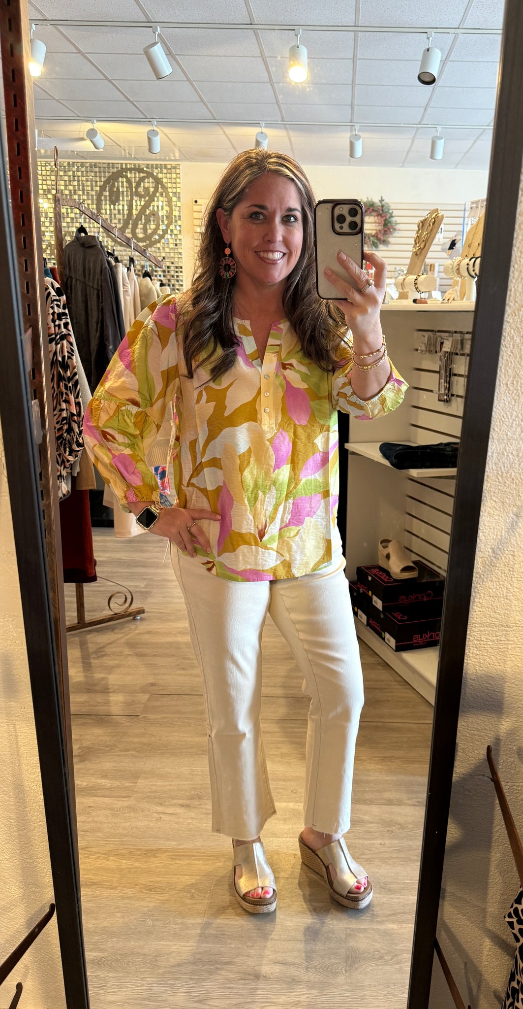 3/4 SLV BLOUSE W/ SMOCKED YOKE