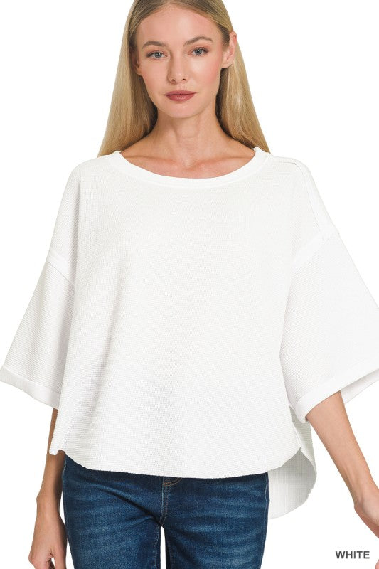 White Double Knit Exposed Seam Curved Hem Top HT2708